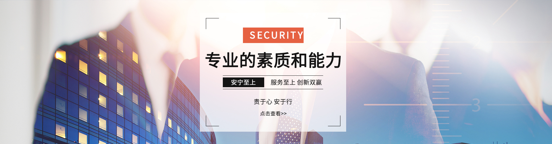 公司始終堅持“務(wù)實、求精、效益、創(chuàng)新”的質(zhì)量方針,奉行“維護 雇主事業(yè)管理秩序,捍衛(wèi)雇主事業(yè)運營安全,致力于雇主事業(yè)長期發(fā)展的保駕護航”服務(wù)宗旨,不斷加強公司管理層和員工隊伍建設(shè),以專業(yè)化、標(biāo)準(zhǔn)化的優(yōu)質(zhì)高效的服務(wù)質(zhì)量為各企事業(yè)單位提供專業(yè)的安全保衛(wèi)及物業(yè)管理服務(wù)。
